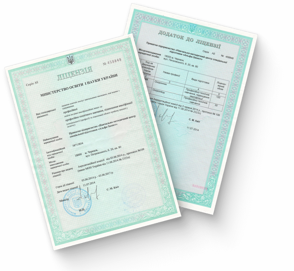 Ліцензовані програми навчання охоронників усіх категорій;